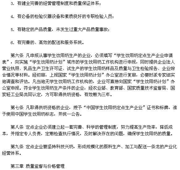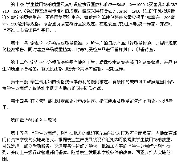 我國"學生飲用奶計劃"暫行管理方法